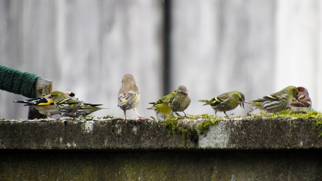 🌷2ème installation sur le même mur mais qui ne bénéficie pas de la transversale offerte par celle montrée plus haut. Les mangeoires sont des soucoupes pour plantes recyclées, lavées, chaque jour, et remplies de graines diverses dont tournesols chaque matin depuis novembre. De même pour les abreuvoirs. Par de temps de vent, elles sont remplacées par des coupelles (type plat) en porcelaine à feu.
