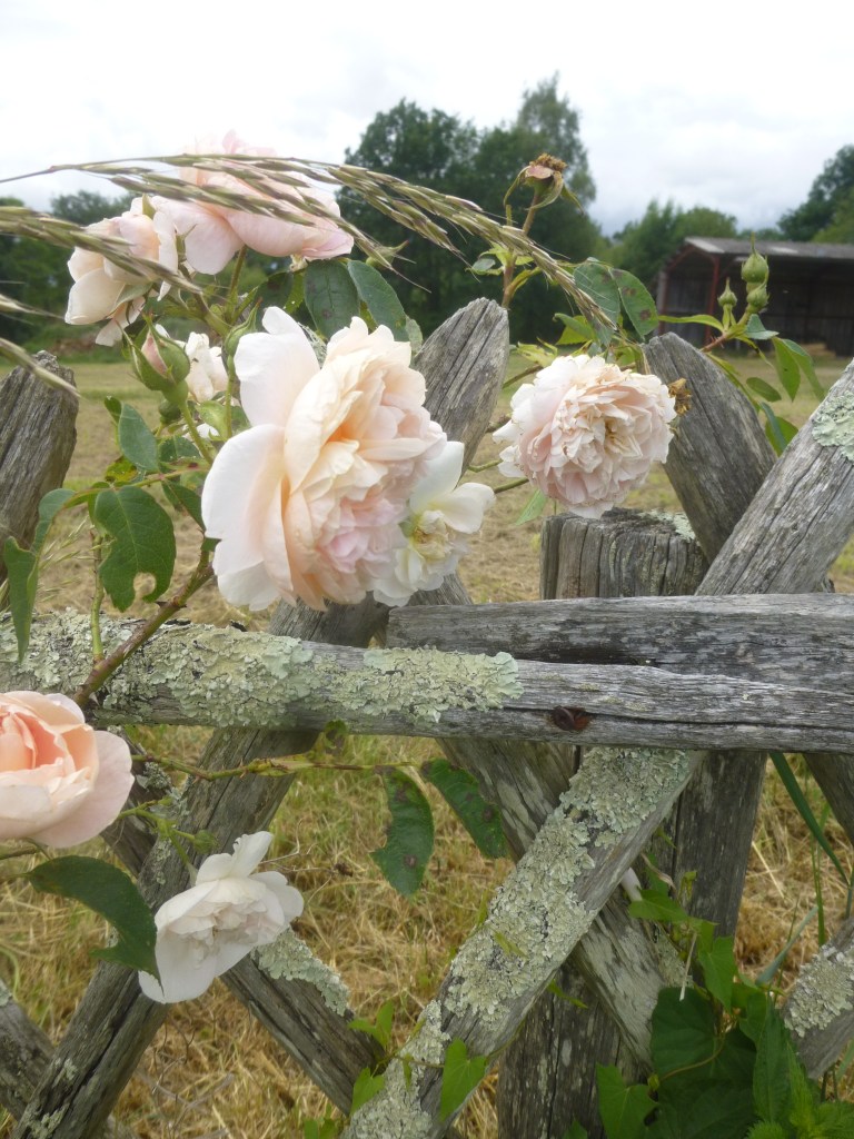 Puis, même temps de présence, les rosiers le long du mur de l’ancien cimetière de Vayres (ils sont de toutes les couleurs- jaunes, roses, rouges et sont environ une quinzaine) ont eu droit à leur remise en forme et beauté, reste encore quelques vieux bois morts à couper…