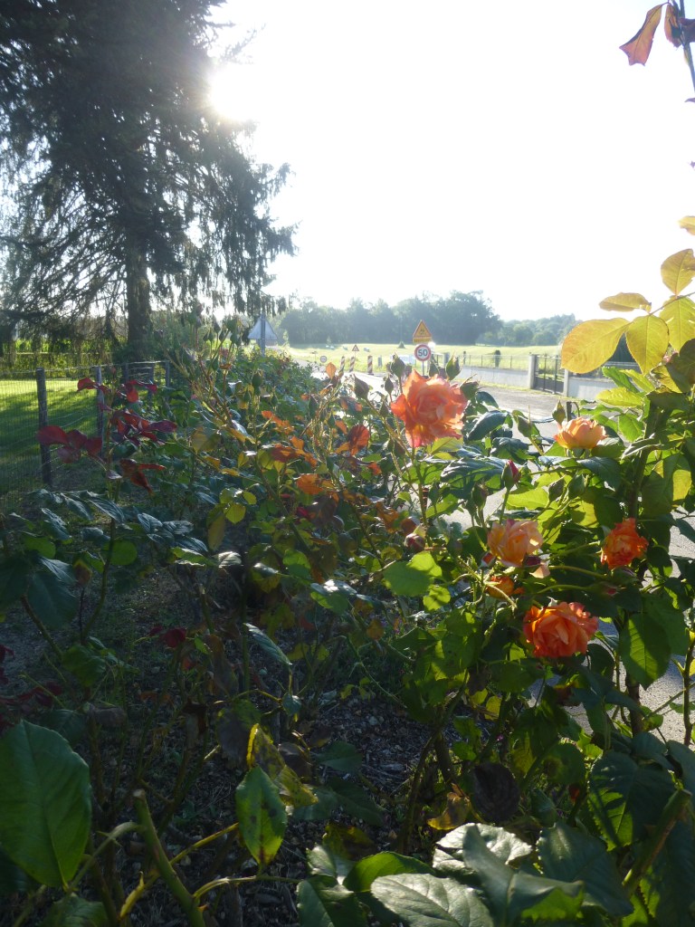 Les Westerland, tels qu’ils se nomment, rosiers vigoureux à la floraison très originale, font partie des entrées de bourg à soigner, il s’agit cette fois de celle en provenance d’Oradour-Sur -Vayres. Ils sont au nombre de 30. Nous avons mis deux matinées à deux.