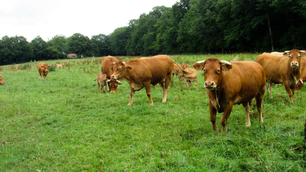 Il nous présente les vaches, c’est la partie de sa compagne, Coralise, et nous expose leur fonctionnement. Ils possèdent 45 hectares dont 5 sont consacrés aux semences, une vache occupe en moyenne un hectare. Ils disposent d’un troupeau de 45 vaches et recherchent de la terre à acheter pour offrir l’espace optimale pour le troupeau.