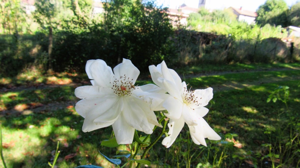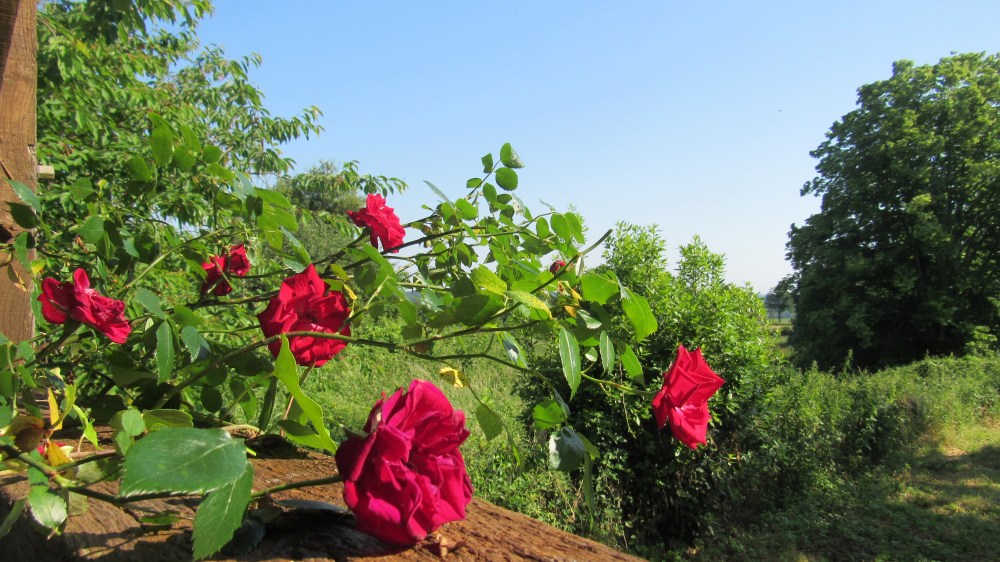 Une année plus tard, la jachère a donné de la voix à l’angle, la chasse à l’ortie et aux liserons, certes l’une est un indicateur biologique du type de sol mais pas un très bon sol pour les rosiers…Nous n’avons détruit aucun habitat naturel ni sauvage, l’ortie a seulement été coupée et non arrachée lorsque celle-ci prenait une place trop encombrante aux pieds des rosiers.
