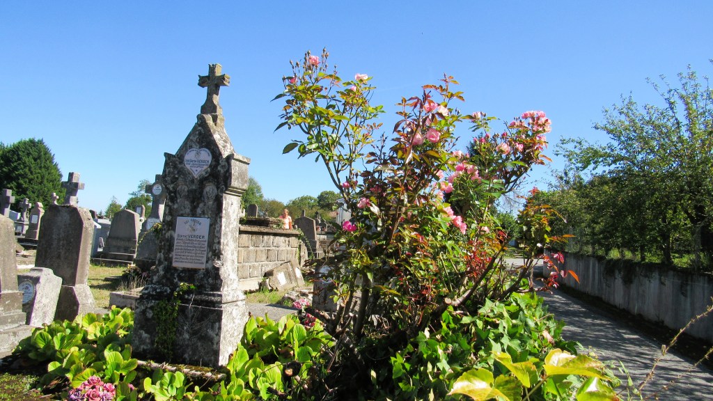 Nous n’oublions pas le grand rosier rose qui vient emboiter le pas au mur avec son numéro 6 de la rue des poètes. Sans compter ceux du cimetière dont celui de Berthe Verger visible depuis la rue qui mène à la crèche.