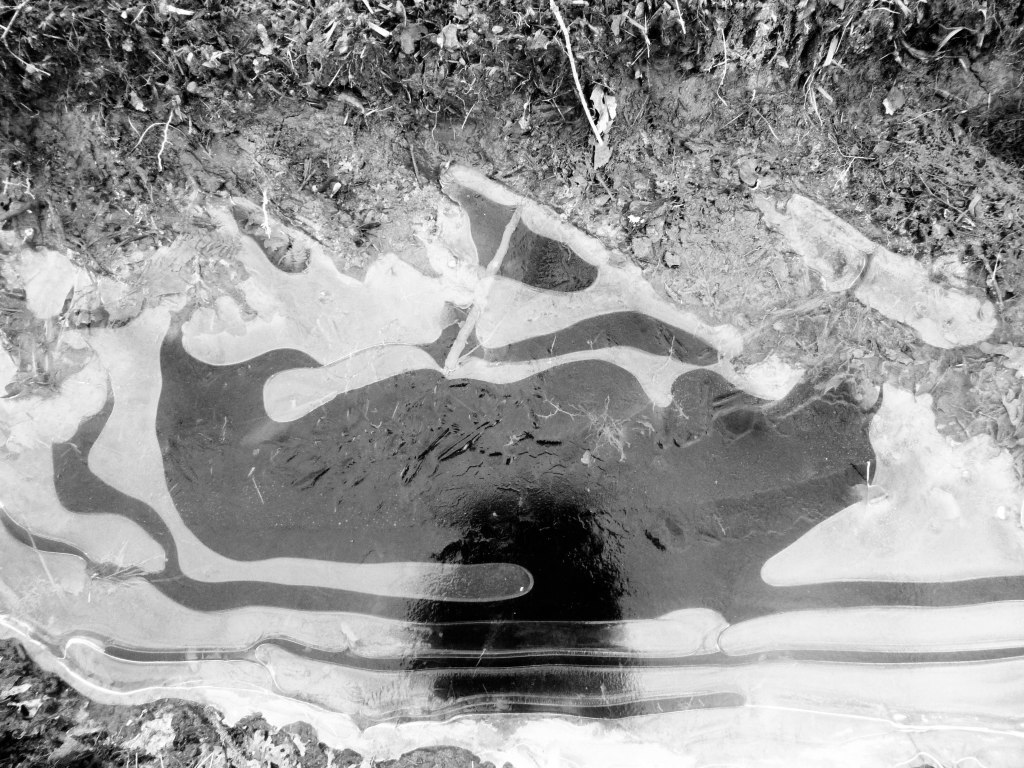 Étancher sa soif, c’est une exposition sous plastique où se mêlent, ainsi suspendus à des crocs de fer (agrafes), des morceaux de feuilles, une végétation modeste, des photos dessalées, des textes issus de journaux, des cartes, plans, tickets…