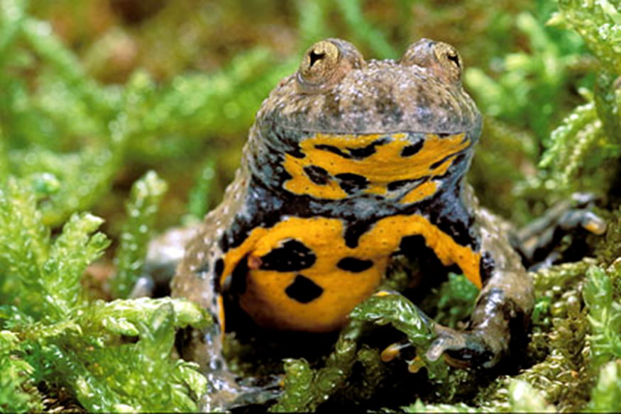 « Avec son petit gabarit, c’est un concentré de surprises. Pouvant mesurer jusque 6 cm, et peser jusque 15 g, le sonneur à ventre jaune est très facilement reconnaissable. Voyez ces pupilles en forme de cœur. Voyez ce dos d’un gris terne, orné de verrues, si difficile à distinguer dans son milieu naturel. Voyez ce ventre jaune vif taché de noir. « Je suis toxique ! » indiquent ces couleurs vives, dévoilées en cas de danger dans le but d’effrayer ou de dissuader l’assaillant.