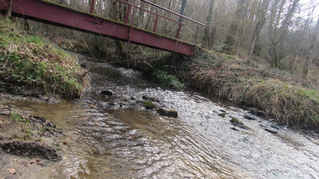 Départ à 9h30 place du champ de foire à Vayres, Rue Gloire de France , puis nous avons emprunté la D 34 , sommes passées devant l’Ecopoint à notre droite et non loin du Pont Vigéreau, nous sommes descendues et avons rencontré la Vayres et ses ruisseaux, un 1er étang. En raison d’une météo très pluvieuse, nous n’avons pas pu réaliser de photographies, voici, néanmoins, cet endroit tel qu’il était en hiver.