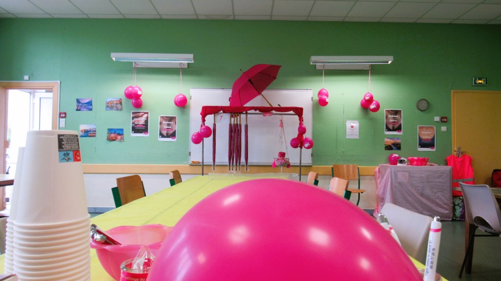 Nous avions réservé la salle des associations à cette occasion, décorée la veille à partir des éléments dont nous disposions de la Ligue contre le Cancer comité Haute-Vienne, boissons et petites créations..