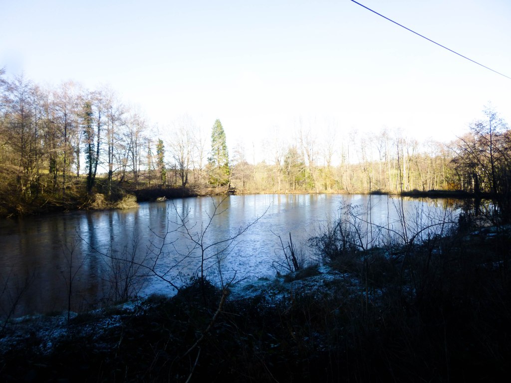 Voici le 1er étang devant lequel nous nous sommes trouvés, photographié, ici; en période gel.