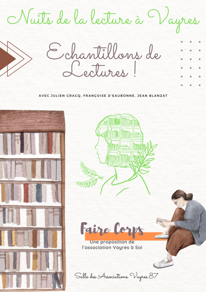 -Voici l’évènement sur Facebook: Faire Corps, une proposition de l’association Vayres à Soi pour les Nuits de la Lecture le samedi 20 janvier