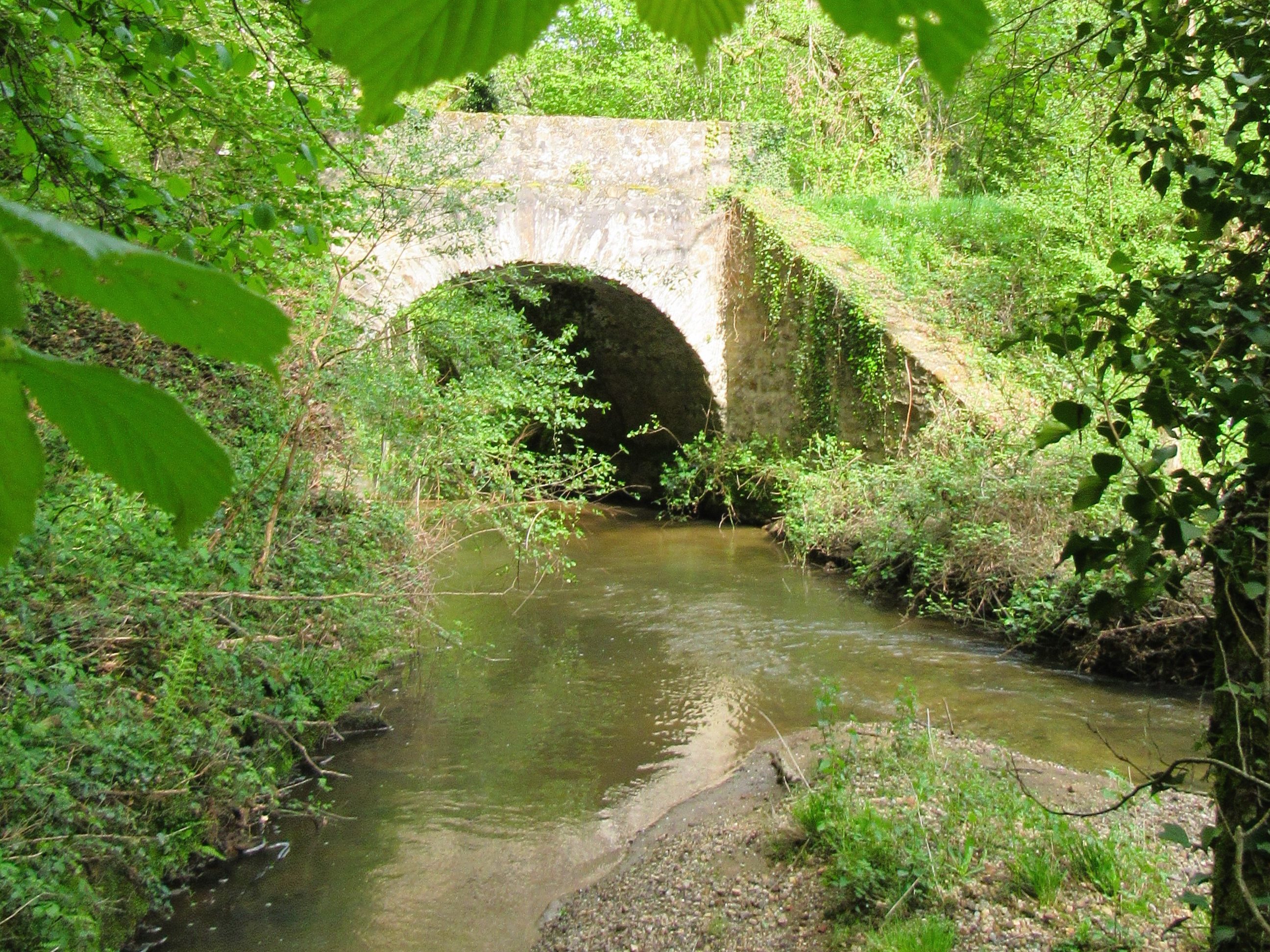 Petit point d’étape sur le pont pour présenter la rivière, la situer dans son contexte, comprendre les indications qu’elle nous offre, comme sa sédimentation, sa ripisylve (ensemble des formations boisées, buissonnantes et herbacées présentes sur les rives d’un cours d’eau, d’une rivière )… Il se dessine au cœur de la rivière un amoncellement minéral de pierre et de sable, l’observation de ses abords, le fait de noter la présence ou non d’un grillage, le dégâts que peuvent engendrer les vaches, avec la présence limitrophe d’un élevage.
