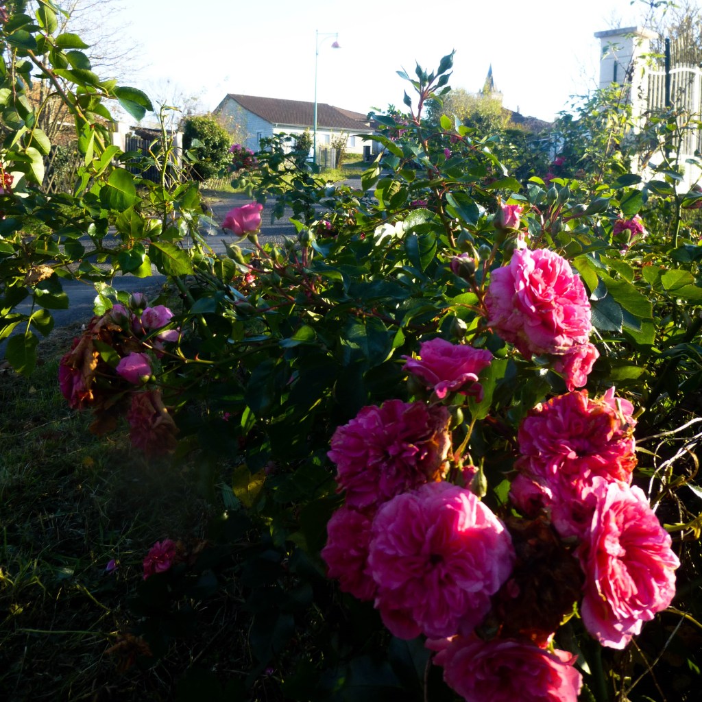 —Nous sommes arrivées ici en septembre 2021, nous avons, très tôt, été sensibles aux massifs de fleurs/roses du village, ceux du bourg font partie, pour quelques uns, de ceux dont nous prenons soin (parterre de roses et fleurs entrée droite BMCD), Rosiers Iceberg square Europeana, massif rue belles roses à hauteur de la maison Roche, idem rue belles roses à hauteur de maison Merle (maison blanche, aujourd’hui cordonnerie), celui du lavoir et ceux que nous rencontrons sur les deux cimetières, ainsi que celui du numéro 6 rue des poètes et, un temps, ceux de la rue belles roses en amont et ceux de l’entrée, nommés Westerland.