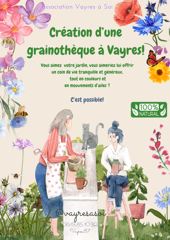 Bonjour à toutes et tous, nous vous présentons, notre grainothèque le 12 juillet prochain à Vayres! Lors de l’évènement Vayres Vadrouille!
