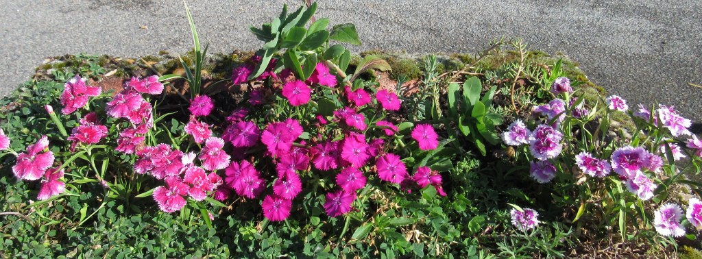 On remarque que les œillets de Chine ne sont pas plantes annuelles puisqu’elles sont encore là en raison de l’hiver assez doux et que les pieds ont bien grossi.