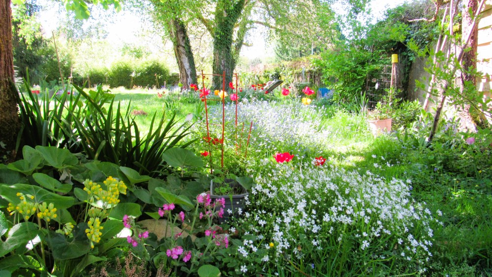 Nous prenons soin du sol de ce jardin au naturel avec feuilles mortes, compost et autres engrais verts…La baignoire est la maison de deux grenouilles, les allées, petits bacs sont de véritables cachettes pour les agiles, crapaud, lézards des murailles…
