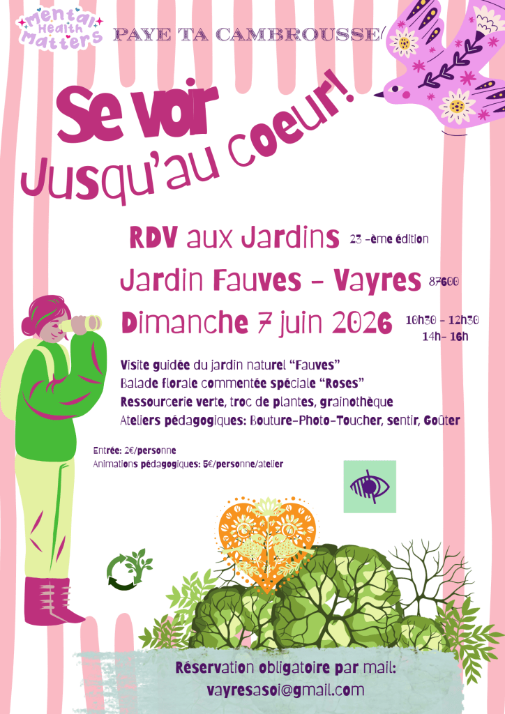 RDV le dimanche 7 juin 2026 au Jardin « Fauves » à Vayres (28 rue belles roses)