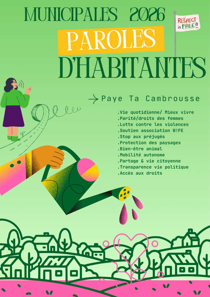Paye Ta Cambrousse : Nous voulons relayer les histoires à partir des enquêtes, des travaux de sociologues, des témoignages de celles dont on ne raconte pas les histoires pour montrer, exposer les discriminations et inviter les élus, les décideurs organisationnels, décisionnels, à penser leur politique publique, leur programmation, leur action avec la pleine conscience de leurs préjugés.