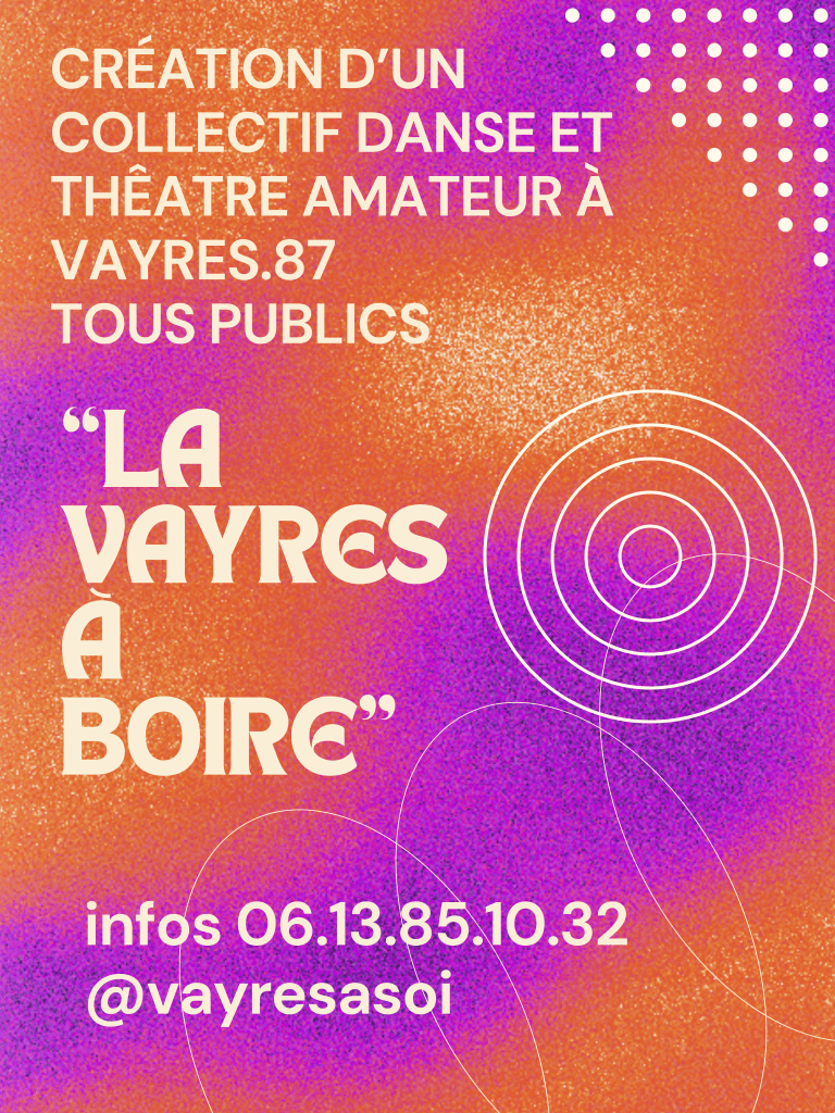 La Vayres à Boire est un collectif de théâtre et de danse amateur en milieu rural, à Vayres, en Haute-Vienne!
